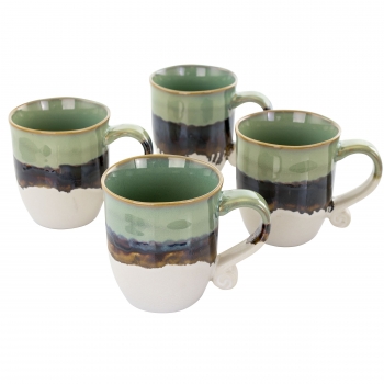 The Meritage Twist 4 Piece 17 Ounce Round Stoneware Cup Set in Green is perfect for the earthy and natural home