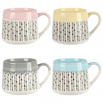 mug features a beautiful pastel color interior and rim with a uniquer wax relief design body. At a 15 ounce capacity with a nice wide opening, you can enjoy just the right amount of your favorite drinks. These mugs are dishwasher and microwave safe making for easy everyday use and cleanup. Bring home a new and gorgeous mug set for your table today!
